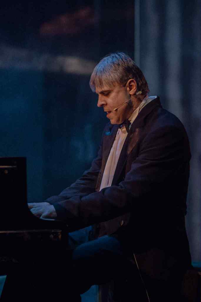 Це ще одна цікава знахідка цієї постановки. В Києві вже звикли до камерних театрів, які грають то «На колесі», то в Золотих воротах. Мені здавалося, що це від нестачі театральних приміщень для всіх охочих театральних колективів. Аж ні. Є причини для камерності й у великих театрів. У великому, з кількома залами театрі Василька перенесли виставу повністю на сцену, пустили глядачів за куліси, просто під рампу, відгородившись від зали завісою. І білетерки перед початком інструктують публіку, щоб не наступали на обертальний круг на «палубі», бо він таки обертатиметься. І піаніста можна буде побачити за грою з усіх ракурсів, в тому числі з-поза спини, на відстані витягнутої руки. Тут вже не увімкнеш фанеру. Тільки наживо.