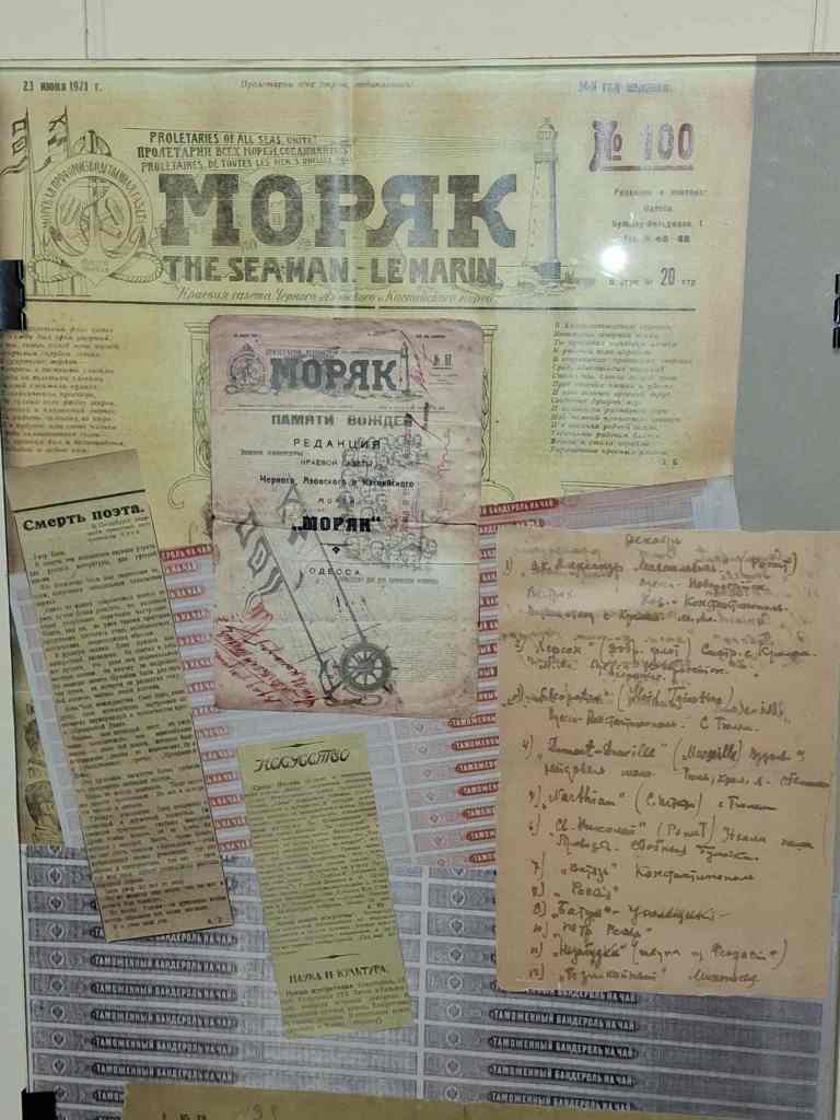 Звідси відкриваються морські шляхи. Паустовський, власне, завіявся в Одесу в надії стати моряком. Але якось не склалося. На подвір’ї музею це позначено якорем-кішкою, судновими ілюмінаторами і макетом маяка. В самому музеї висять на вішалці курсантські кашкети і гюйс, за які якийсь розгільдяй точно був наказаний стройовим відділом, є модель сухогруза «Константин Паустовский», листівка госпітального французького пароплава «Марсель», на який запізнився сісти санітар Паустовський, а це судно торпедував у морі німецький підводний човен, і навіть фото пасажирських трофейних пароплавів ЧМП «Победа» та «Адмірал Нахімов», на яких СРСР катав письменників довкола Європи та на Кавказ. Але головна реліквія – вивіска й номери газети «Моряк», в якій фігурант працював коректором. Парадокси цієї газети в тому, що в часи, коли вона видавалася на обойному папері, в Одесі геть не залишилося пароплавів, денікінці перегнали на Стамбул усе, що трималося на воді, а матроси й письменники залишились на березі. Мені здається, це циклічна подія на Чорному морі, зараз ми знову в тій точці циклу, коли повно моряків, кожен 20-й моряк у світі українець, а українських пароплавів чортма. Письменників трохи є, але хто з них напише «Чорне море»?